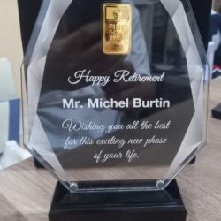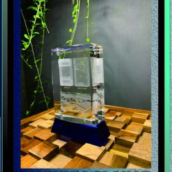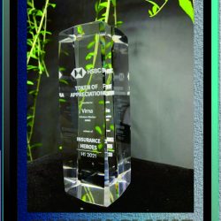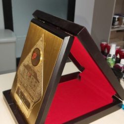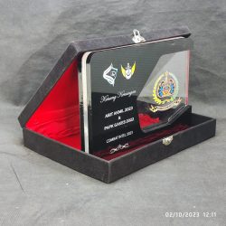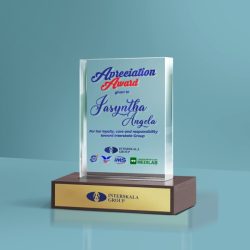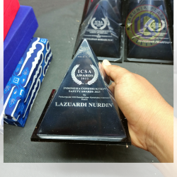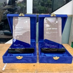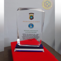 Plakat kristal premium dengan tampilan mewah dan kilau elegan, ideal sebagai bentuk apresiasi yang berkelas yang disesuaikan dengan keinginan Anda